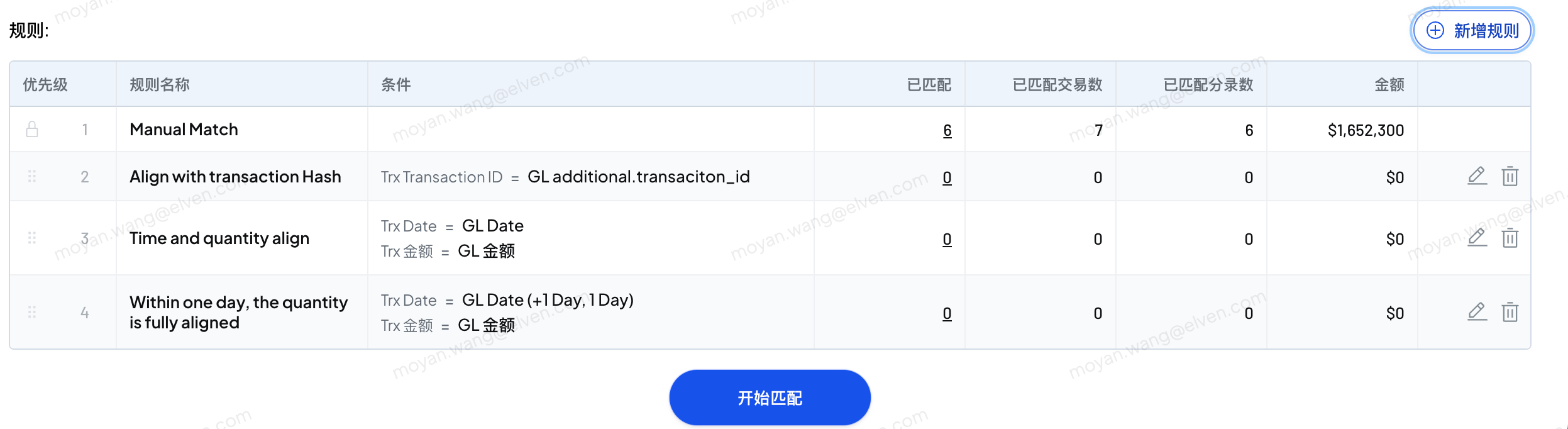 3. 点击“开始匹配”按钮，执行自动化对账规则。