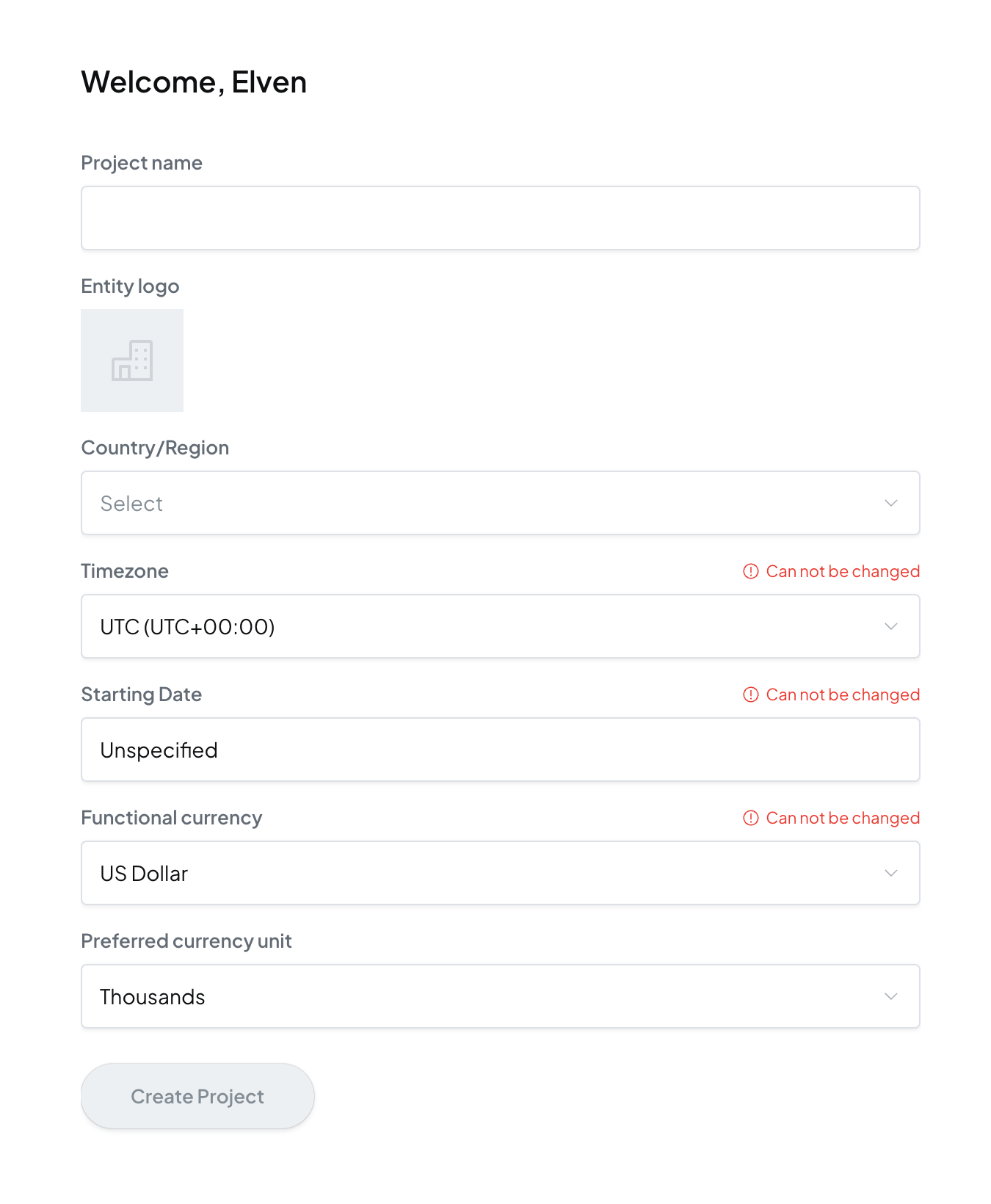 输入您的项目名称,并设置项目图标、时区、功能货币((如果您的资产以美元为单位,请选择美元)等信息后,即可完成第一个项目的创建。